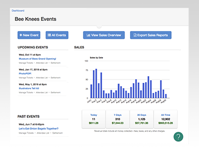 Your event dashboard gives you control over your event listing: inventory, pricing, promotion codes, customer information, messaging, and real-time sales reporting.